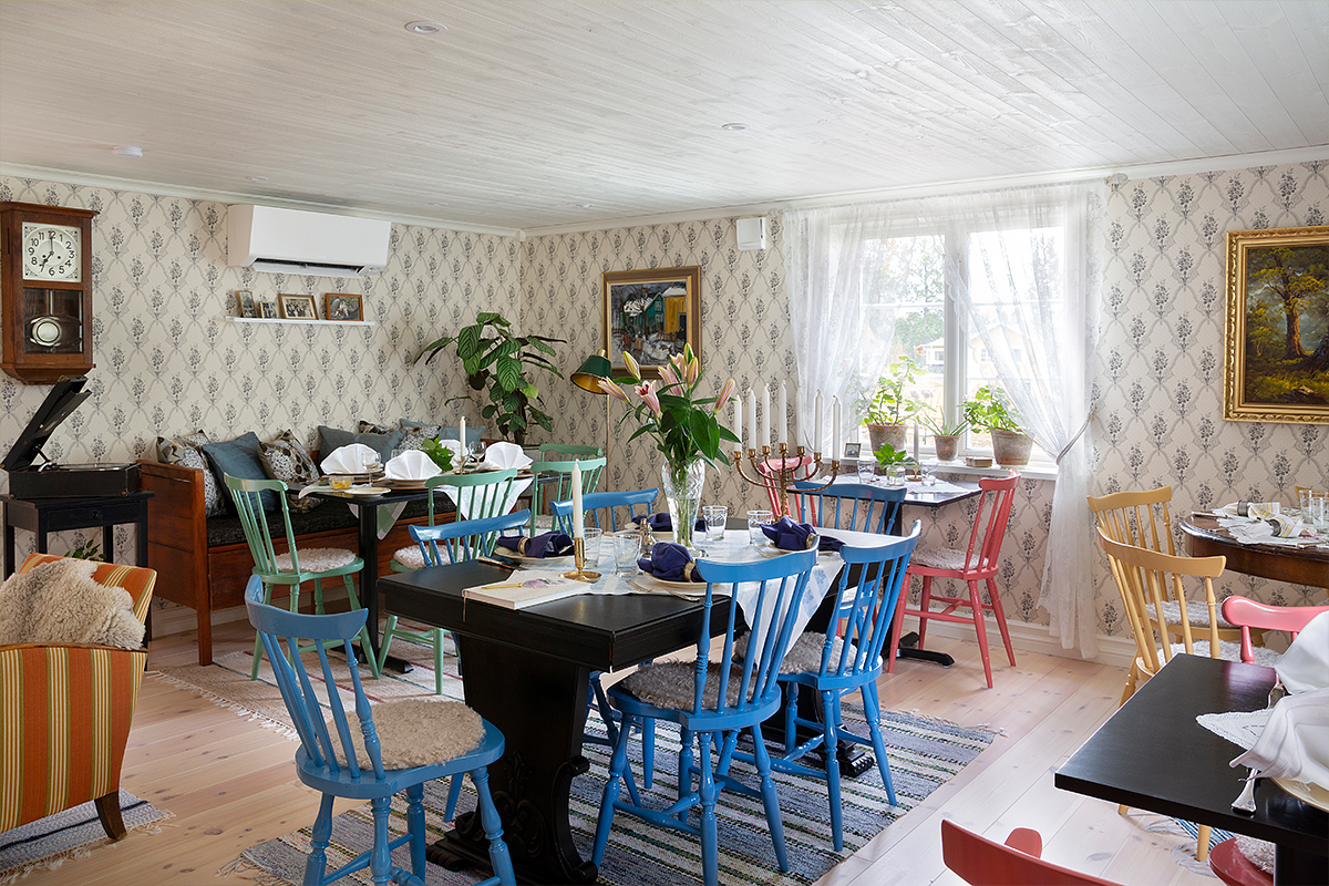 Totalt har vi kapacitet för 30 personer i våra två matsalar. På sommaren har vi också en liten uteservering i mån av vackert väder.